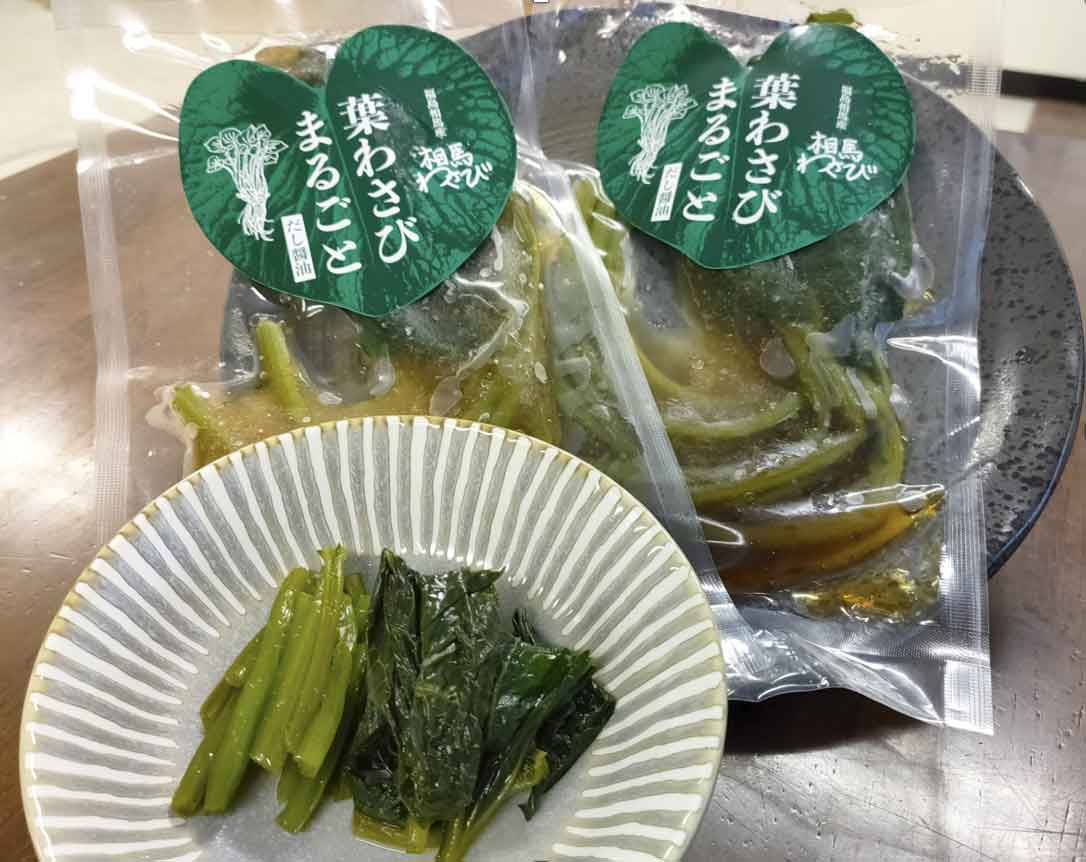 弊社の自慢である「きれいに収穫できる」こと。わさび屋のわさび商品として、本来の「わさび」の風味が活きる商品にしたいと思い誕生しました。1本1本手摘みで収穫された葉わさびを刻まずそのまま梱包、辛味を添加しない方法で冷凍。解凍するだけでわさび本来の香りと辛みを楽しめます。