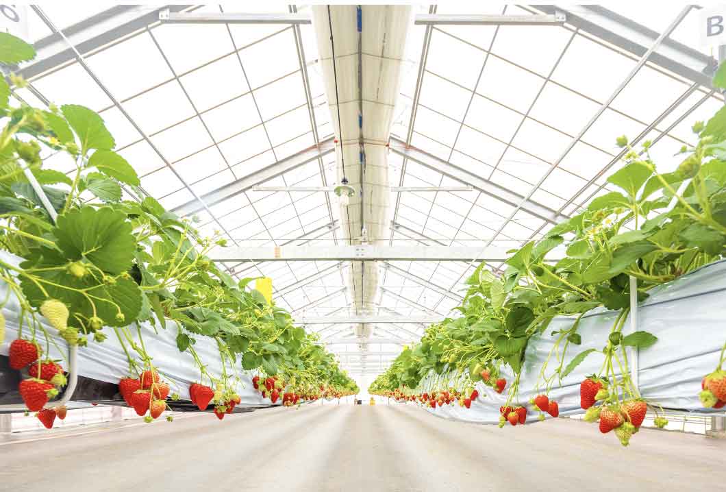 苺づくりのこだわりは、統合環境システムを利用してハウス内の空間温度、地温、湿度、CO2濃度などをモニタリングし、コントロールすることにあります。これにより、食味に徹底的にこだわったいちごをお届けしています。また、病害虫防除においても、従来の化学農薬に頼るだけでなく、自然由来の太陽熱や生物農薬、UV-Bなどを使用することで、安心で安全ないちごづくりに取り組んでいます。